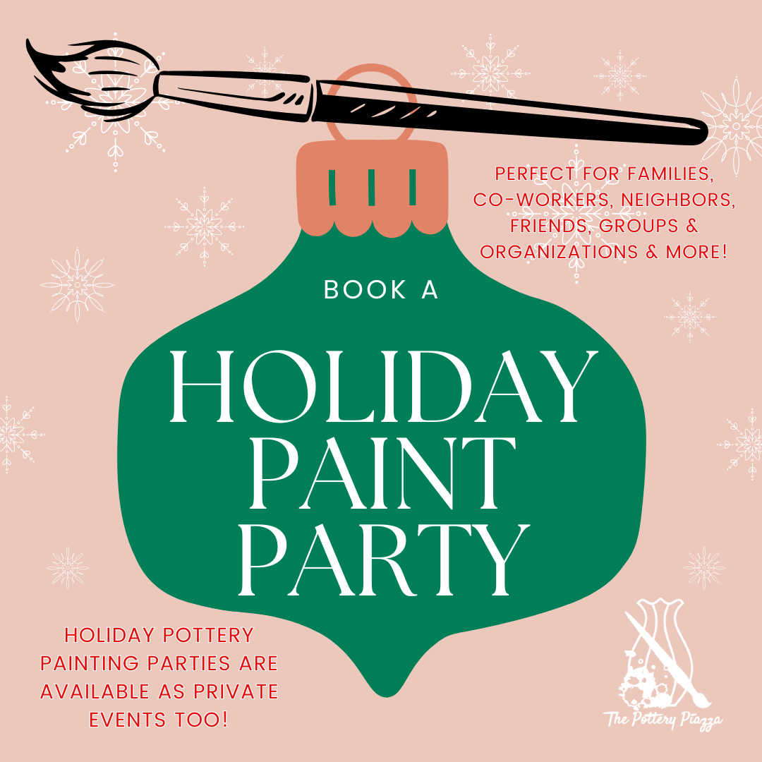 This party fee covers all of the above-mentioned inclusions for a maximum of 12 painters/people (or up to 20 painters max.) for our party room with the exception of the pottery shapes you and your guests select during the event and tax- you may select and purchase your pottery the day of your event. Due to COVID-19 seating capacity restrictions, we do not have seating (or standing room) inside the studio for non-participants. All party guests are expected to participate and paint pottery. If you need space to accommodate more than 20 participants in your party, you will want to Rent the Studio for a Private Paint Time Event instead of booking an Adult Pottery Painting Party.